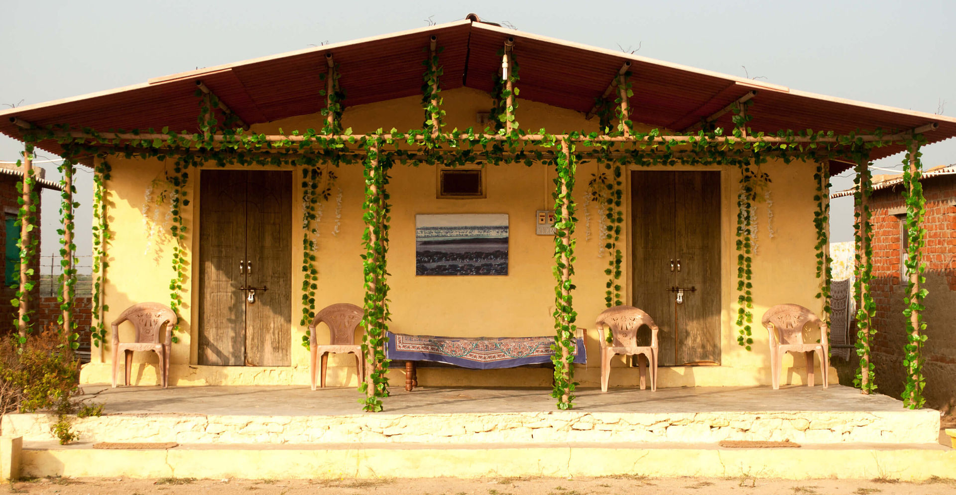 Experience the simple charm of our traditional mud cottages, decorated with local art and warm colors. Each room offers comfortable beds, clean facilities, and a peaceful village vibe — just steps away from the open desert. Sit back, relax, and feel right at home in the heart of the Little Rann.